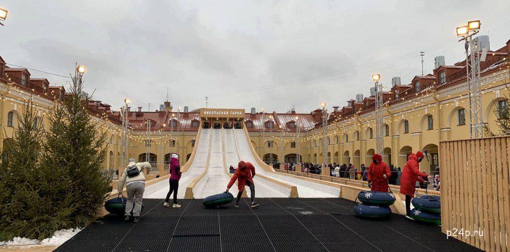 Никольские ряды стали уже традиционным местом новогодних гуляний для Петербуржцев. В этом году здесь будет работать самая высокая в Петербурге горка и красивая детская карусель.