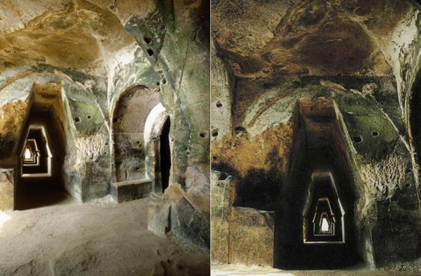 Английский инженер Роберт Пейджет исследовал эти пещеры. В удивительной подземной сети, врезанной на одну пятую часть мили вглубь скалы, обнаружен канал, который, вероятно, был построен как подобие реки Стикс, ведь, по легендам, сивилла сопровождала тени умерших в загробное царство.