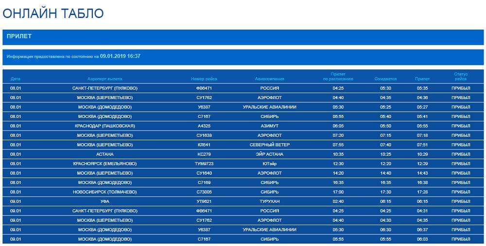 Сразу стоит отметить: табло, предложенное сетью, включая информацию, которая отображается на данный момент в аэропорту.