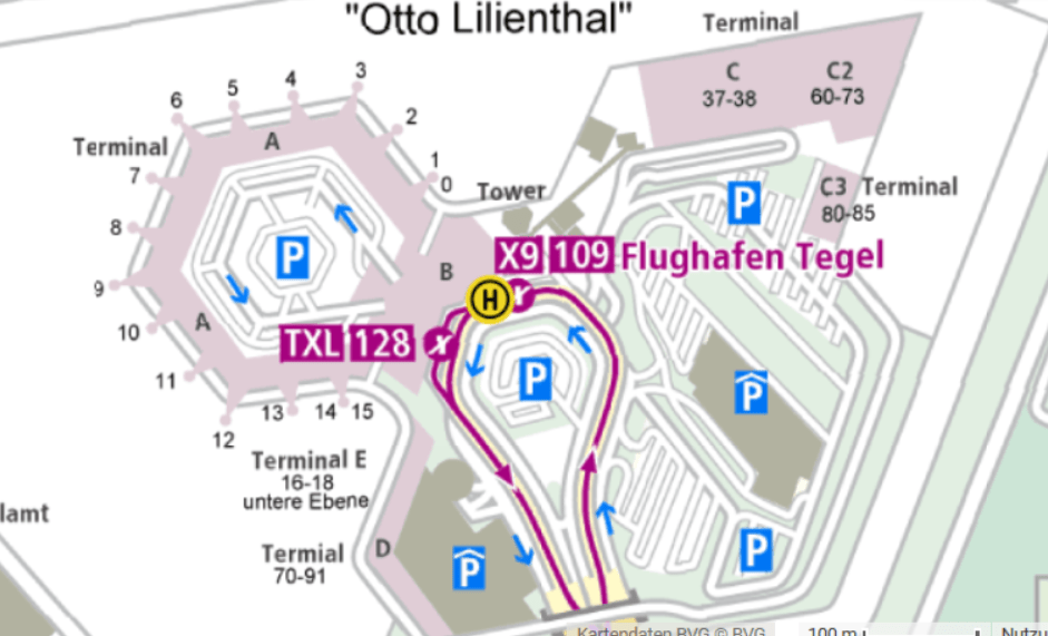 Он назван в честь немецкого инженера и пионера авиации — Отто Лилиенталя. Код аэропорта Берлин-Тегель по ИКАО — EDDT, а по ИАТА — TXL. Он является хабом для двух авиакомпаний — Air Berlin и Germanwings. Всего в Берлине два аэровокзальных комплекса — “Тегель” и “Шенефельд”. Где расположены аэропорты на карте Берлина, можно посмотреть ниже.