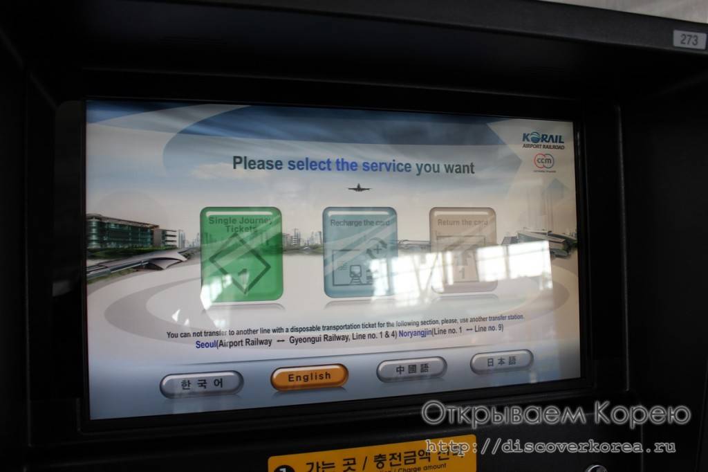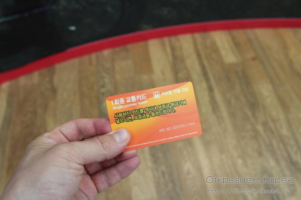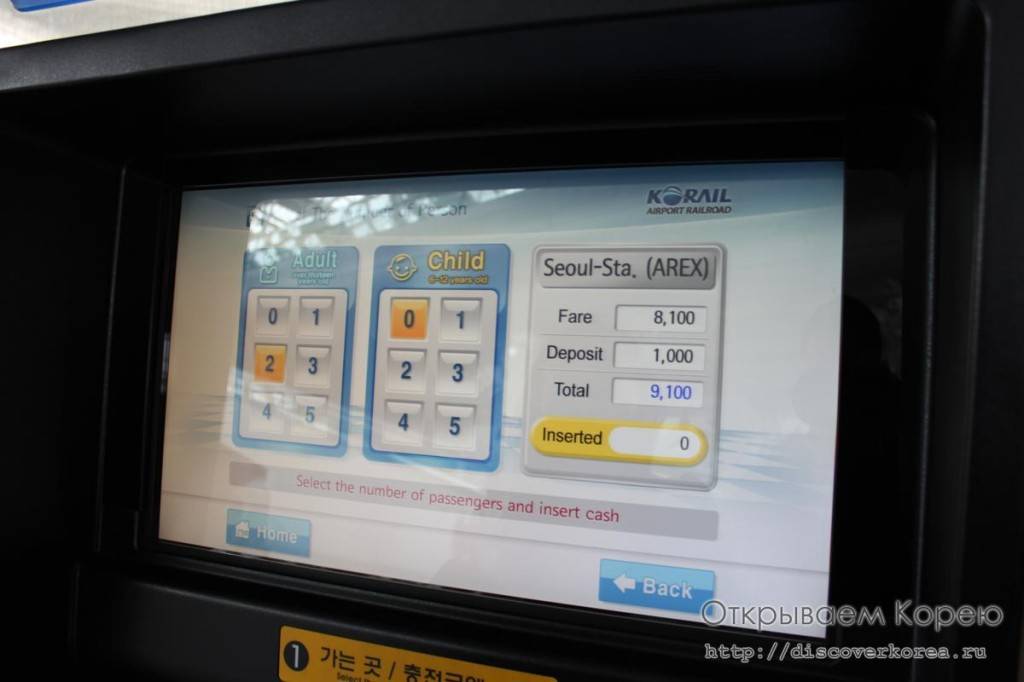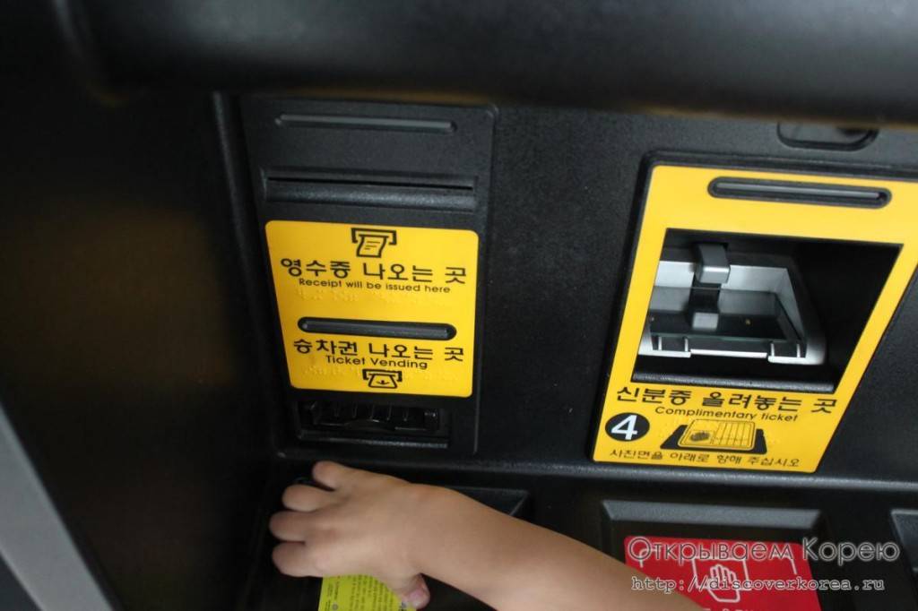 Нас двое взрослых. Стоимость проезда в нашем случае 8100Вон т.е. 4050Вон на человека, это примерно 4$ или примерно 280 рублей. Автомат с вас дополнительно возьмет 500Вон (с носа) в качестве депозита за карту, эти деньги вы вернете позже сдав дорожную карту в соответствующий автомат. И того к оплате 9100Вон:
