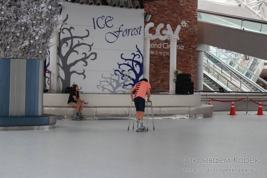 «Ice Forest» мой свободный перевод «Зимний Лес». Можно взять на прокат электромобиль для ребенка, еще какое то транспортное средство приводимое в движение возвратно-поступательными движениями руля, и просто ролики. Территория «Зимнего леса» часто меняется, к Вашему приезду, здесь может быть иная инсталляция.