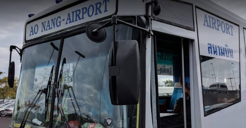 Чёткого расписания нет. Все они “равняются” на прибывающие рейсы и отъезжают по мере заполнения. Время в пути зависит от наличия или отсутствия пробок. До Ао Нанга можно добраться примерно за час. Билеты продаются в здании аэропорта, слева от выхода Вы увидите надпись Shuttle bus. Автобусы небольшие, белого цвета, с надписью “аэропорт” на английском. Места хватает всем и стоять не придётся.