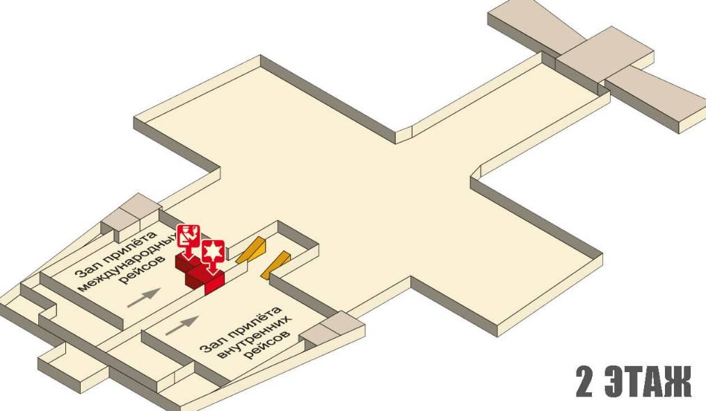 На втором этаже находятся залы прилетов, причем как внутренних рейсов, так и международных. Здесь же пассажиры проходят таможенный контроль.