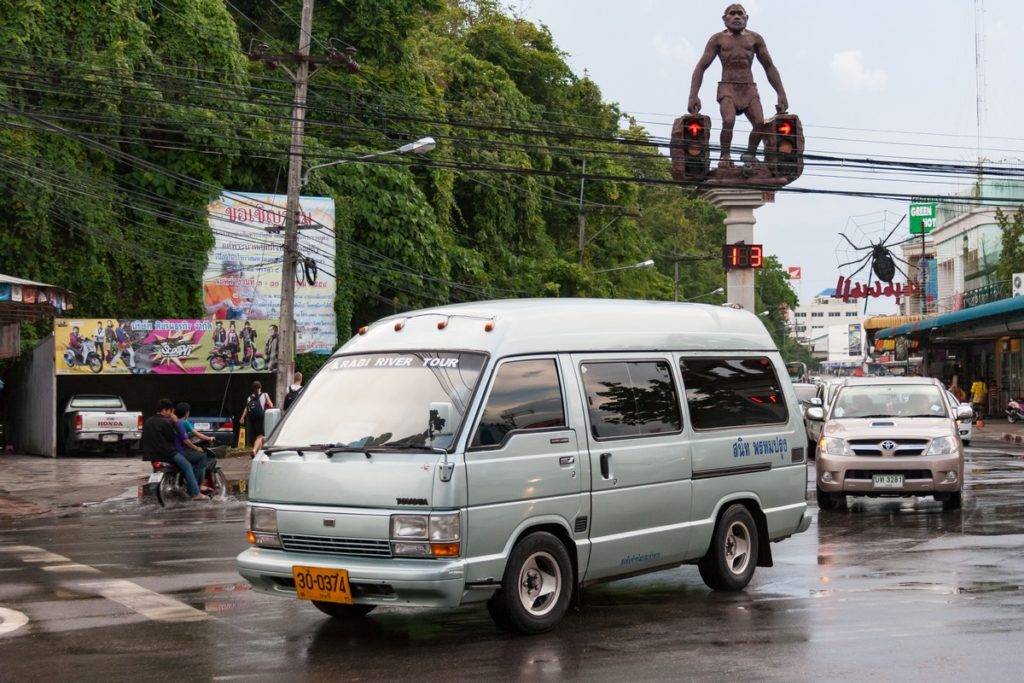 Главное достоинство ‒ дешевизна. Маршруты: автовокзал ‒ 80 бат (примерно 2.5 доллара), центр города ‒ 90 бат (меньше 3 долларов), и Ао Нанг ‒ 150 бат (около 4.5 долларов). Провоз багажа входит в стоимость.