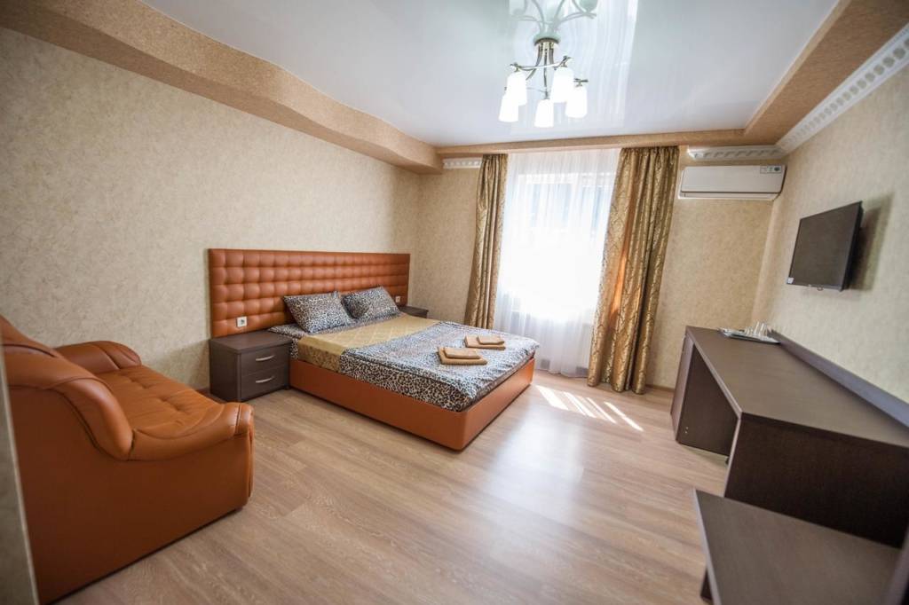 Апартаменты расположены в одиннадцати километрах от выставочного центра КраснодарЭКСПО. Персонал обучен навыкам разговора с иностранными путешественниками. Комнаты оборудованы: