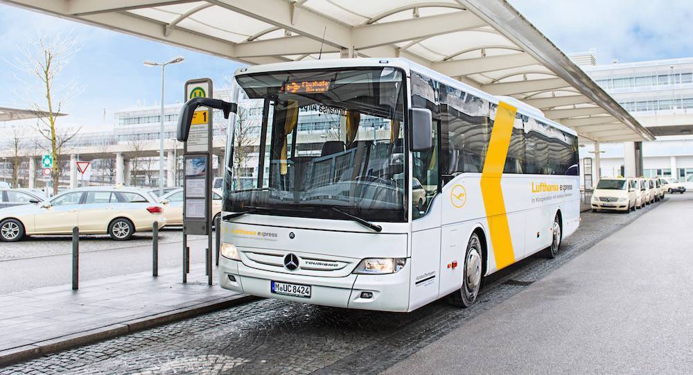 Автобусные остановки находятся совсем рядом с Терминалом 1 и Терминалом 2. Перевоз пассажиров из аэропорта Мюнхена в город совершает компания Lufthansa Airport Bus.