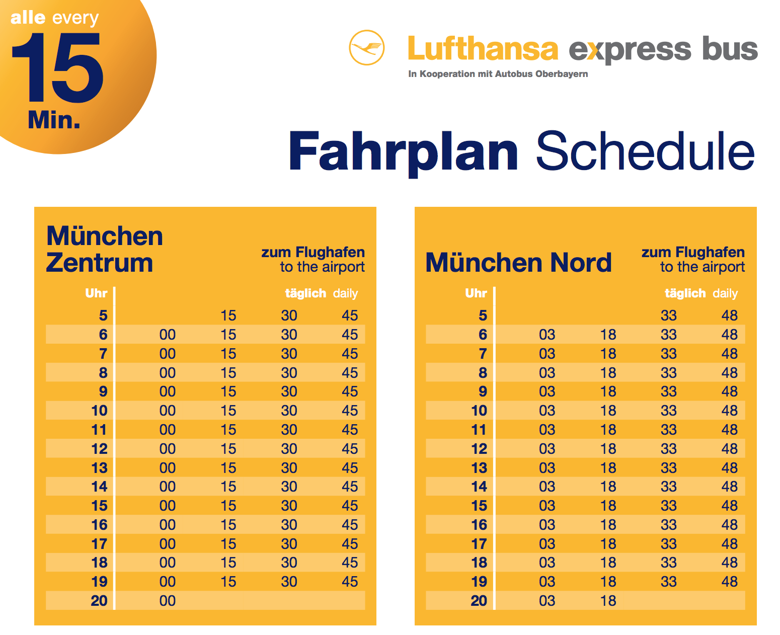Расписание автобуса Lufthansa Airport Bus из Мюнхена
