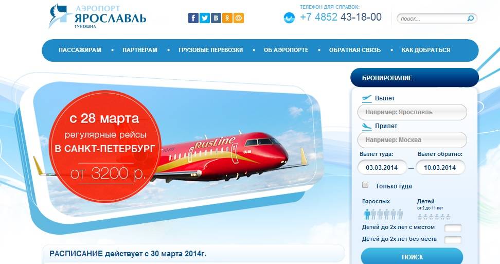 Расписание рейсов прибытия в аэропорт «Ярославль Туношна»