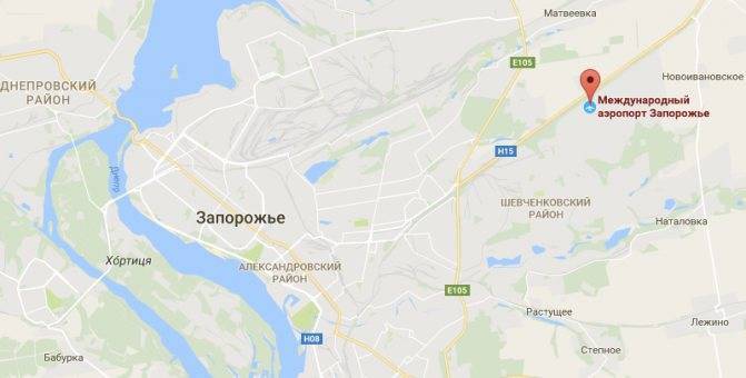 Аэропорт Запорожья на карте