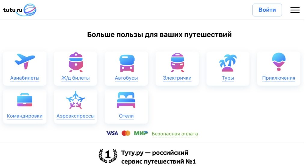 - Широкий список услуг (жд сообщения, поиск трансфера и отеля, возможность взять в аренду машину);