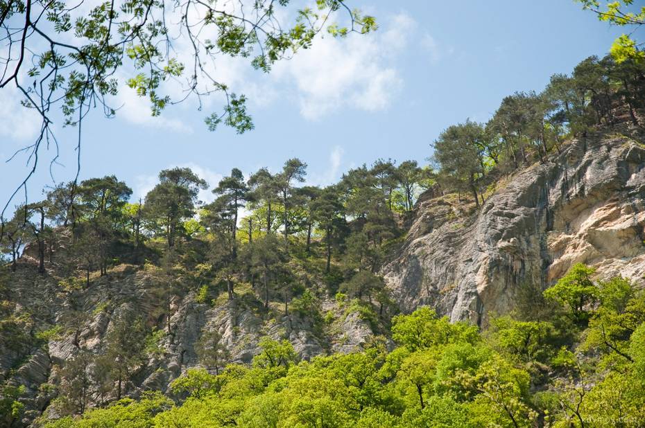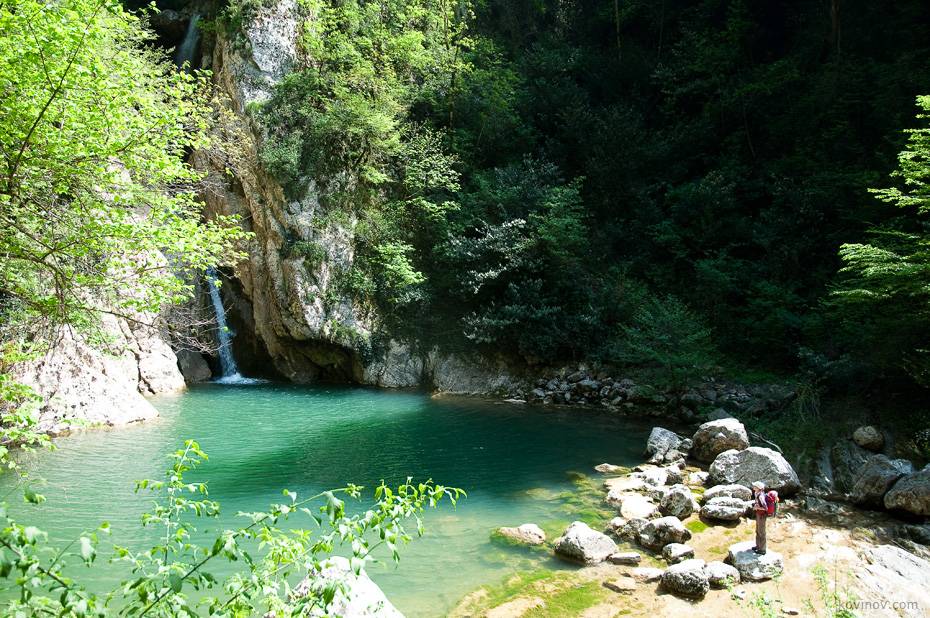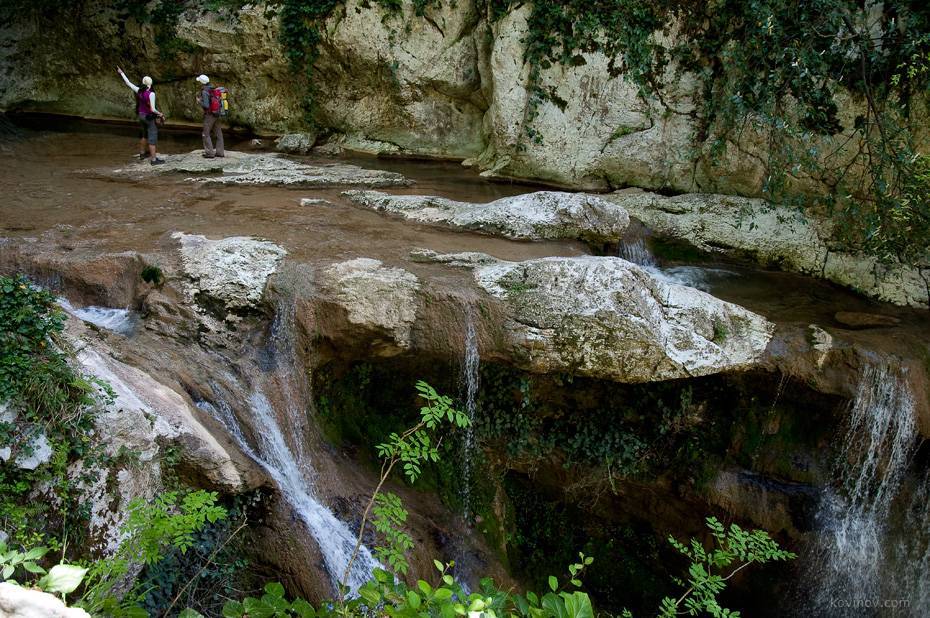 После посещения горы Ахун по гребню горы спуститься вниз и далее, мимо водопадов, к нижнему входу в ущелье. Общественный транспорт на Ахун не ходит – подняться можно или на такси (600-800 рублей от Сочи), или пешком всё от того же Спутника.