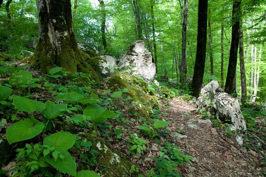 По такому лесу идти очень интересно, хочется фотографировать каждый камень и дерево. Валуны на фото достигают гигантских размеров.