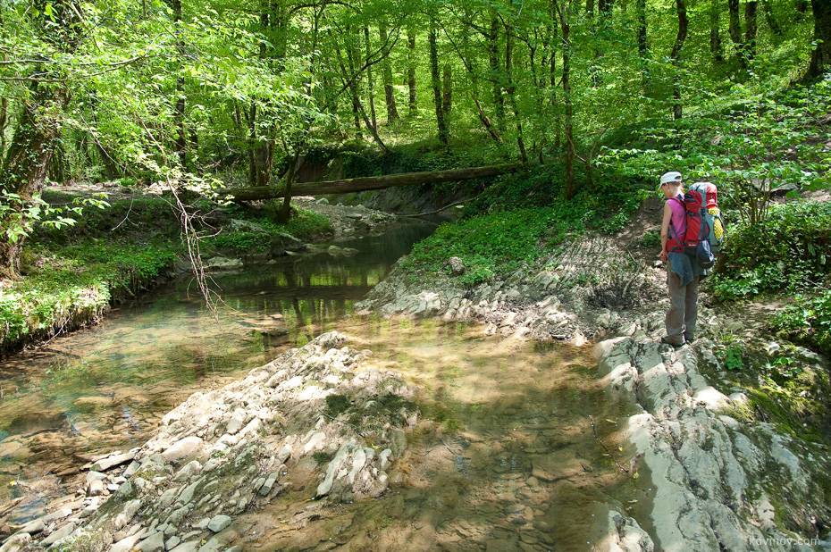 Выйдя из автобуса в Старой Мацесте, вы переходите реку и по асфальтовой дорожке через лес идете ко входу в национальный парк (примерно 4 км).