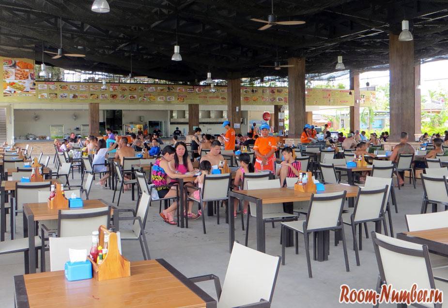 Ресторан в Рамаяне один большой и относительно недорогой. Много мест, столики, крытая зона на случай дождя. Ресторан приличный. Ценник для такого аквапарка, как ни странно, совсем не заоблачный. Здесь можно покушать не дороже, чем в пляжных кафе в Паттайе. Блюда в среднем от 100-150 бат. То есть примерно за 500 бат вдвоем можно полноценно пообедать.