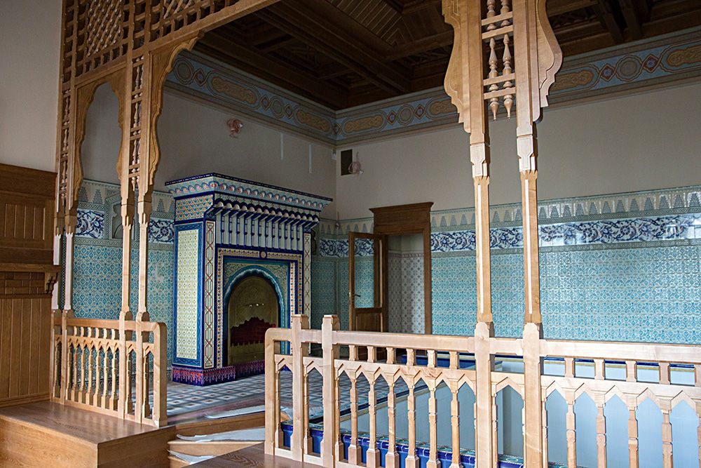 В Мавританской уборной главный аккорд — бассейн на 7 тысяч ведер воды. Изысканная облицовка уборной состоит из 40 видов оригинальных изразцов, а ажурная перегородка украшена ароматницами, приобретенными Николаем II во время своего путешествия по Японии.