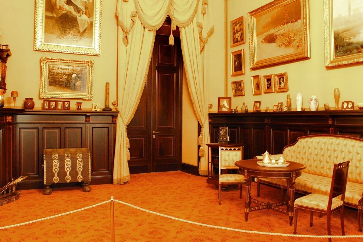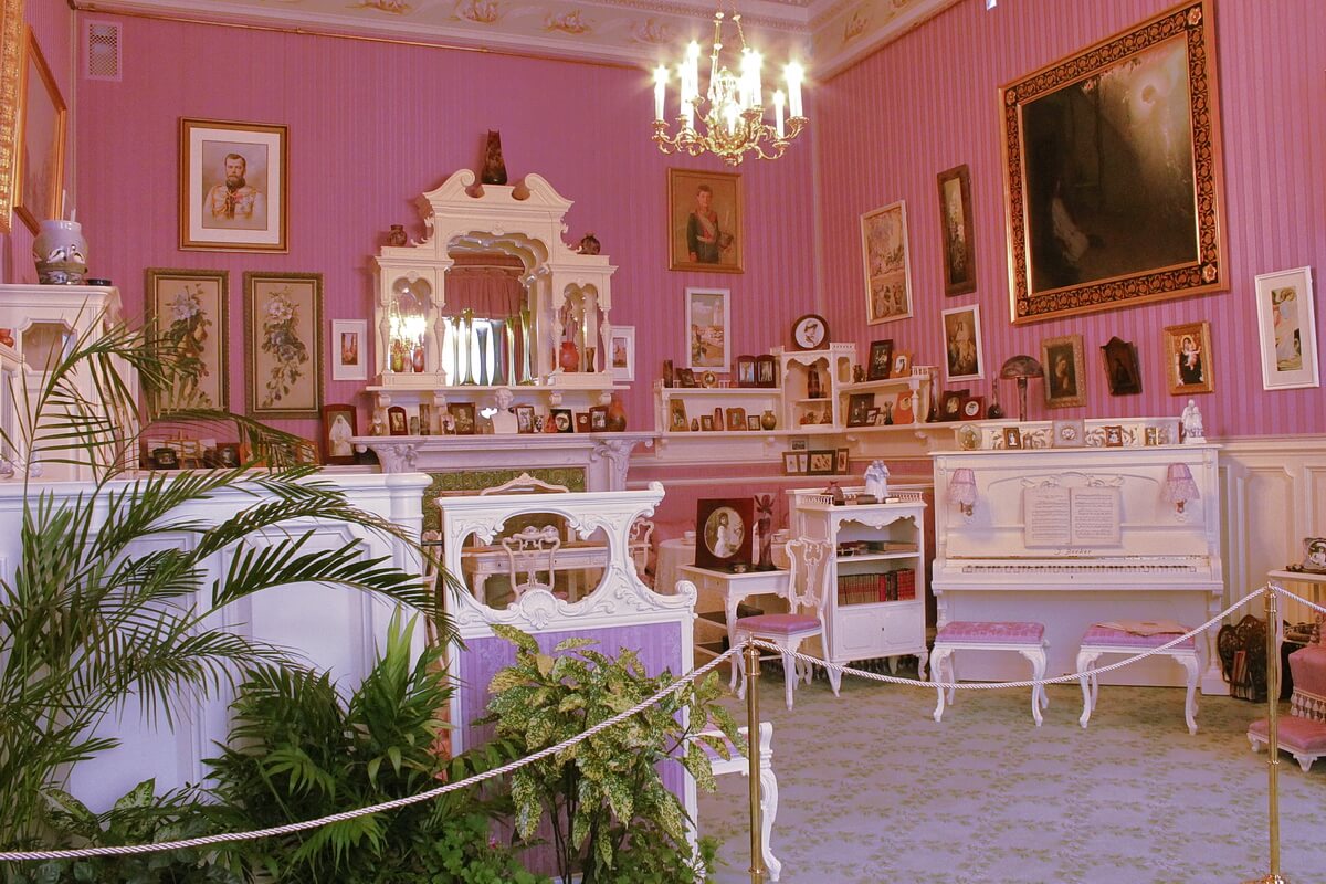 Бросается в глаза большое количество разнообразной мебели и пианино фирмы Becker, на котором любила музицировать Александра Федоровна. Подлинный музыкальный инструмент, к сожалению, не сохранился, но сотрудникам музея чудом удалось приобрести фортепьяно той же фирмы на одной из распродаж.