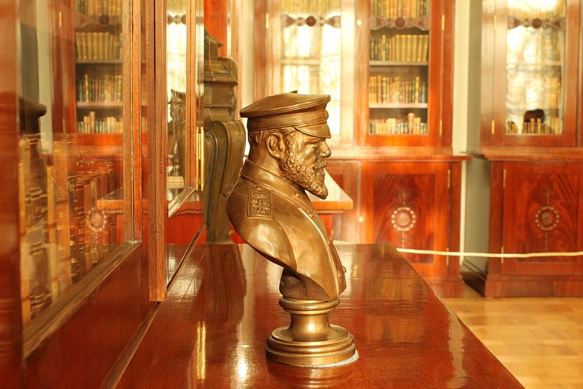 В рабочем кабинете читались доклады и принимались чиновники. Здесь же находилась личная библиотека императора, насчитывающая более 700 томов книг по различной тематике.