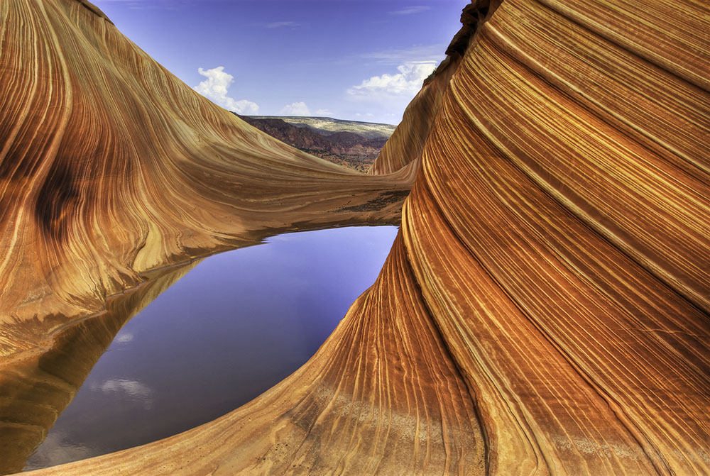 Находится эта формация в США, на границе двух штатов — Юты и Аризоны, в крайне труднодоступном месте на высоте в 1600 метров над уровнем моря. Волна состоит из песчаных дюн, которые древнее море, высокая температура и ветер превратили в затвердевшие желоба. Ученые считают, что этот каньон возник около 190 миллионов лет тому назад, когда здесь было мелкое море, по берегам которого гуляли динозавры. Кстати, остатки раковин древних моллюсков можно обнаружить, если внимательно смотреть себе под ноги во время путешествия по Аризонской волне.