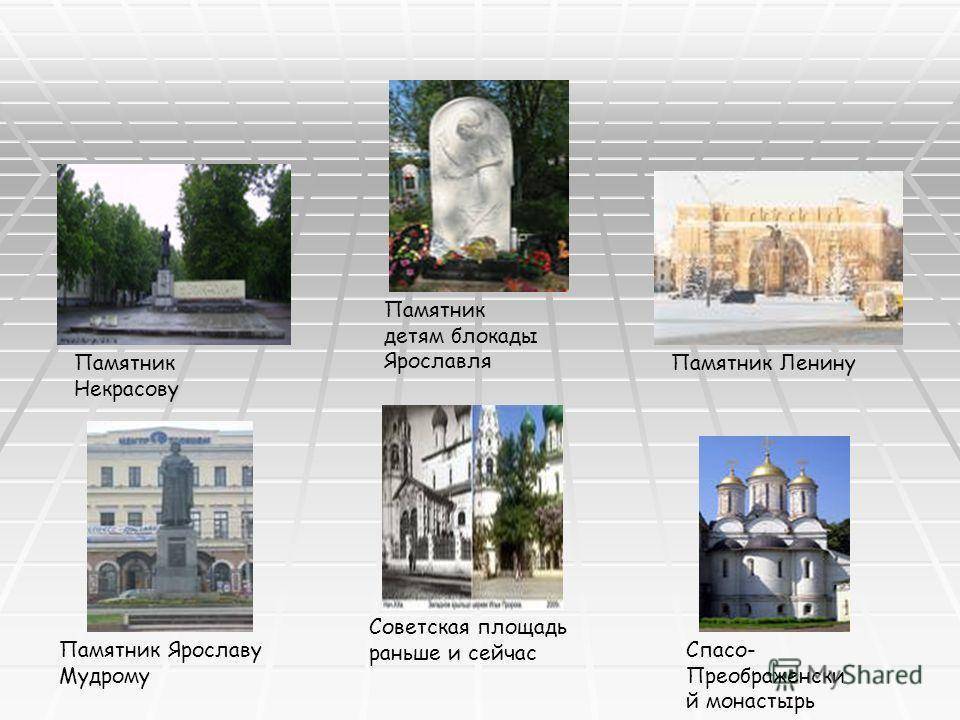 Памятник Некрасову Памятник детям блокады Ярославля Памятник Ленину Советская площадь раньше и сейчас Памятник Ярославу Мудрому Спасо- Преображенски й монастырь
