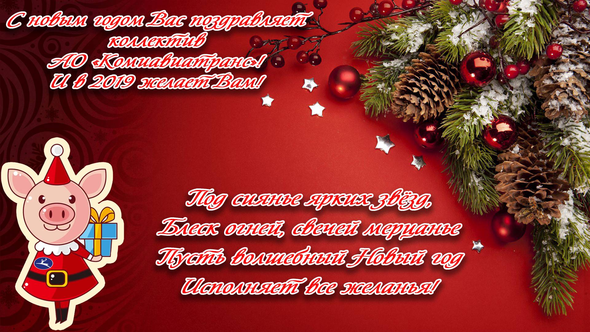 От имени руководства АО “Комиавиатранс” и себя лично поздравляю Вас с наступающим Новым 2019 годом и Рождеством Христовым!