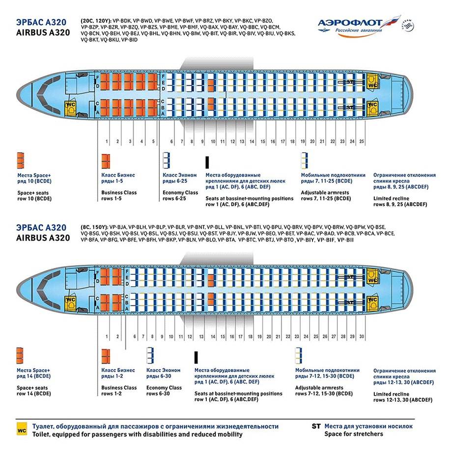 При выборе лучшего места в A320 Уральских авиалиний учтите следующие рекомендации (по рядам):