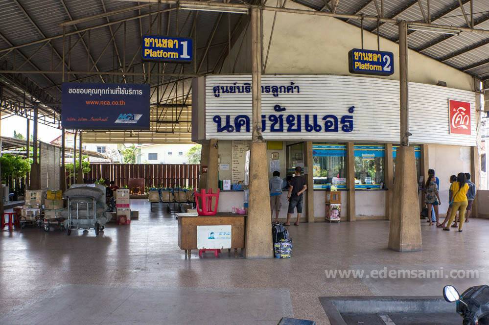 Находится на Сукхумвите. Нет, эта не та автостанция, с которой идет 407 автобус в Нонгкхай, я не перепутала. Nakhonchai Khonsong расположена по той же стороне, буквально за 50 м до пересечения с Центральной улицей, рядом с дьюти-фри King Power. Автобусы Накхончая ездят в Исан.