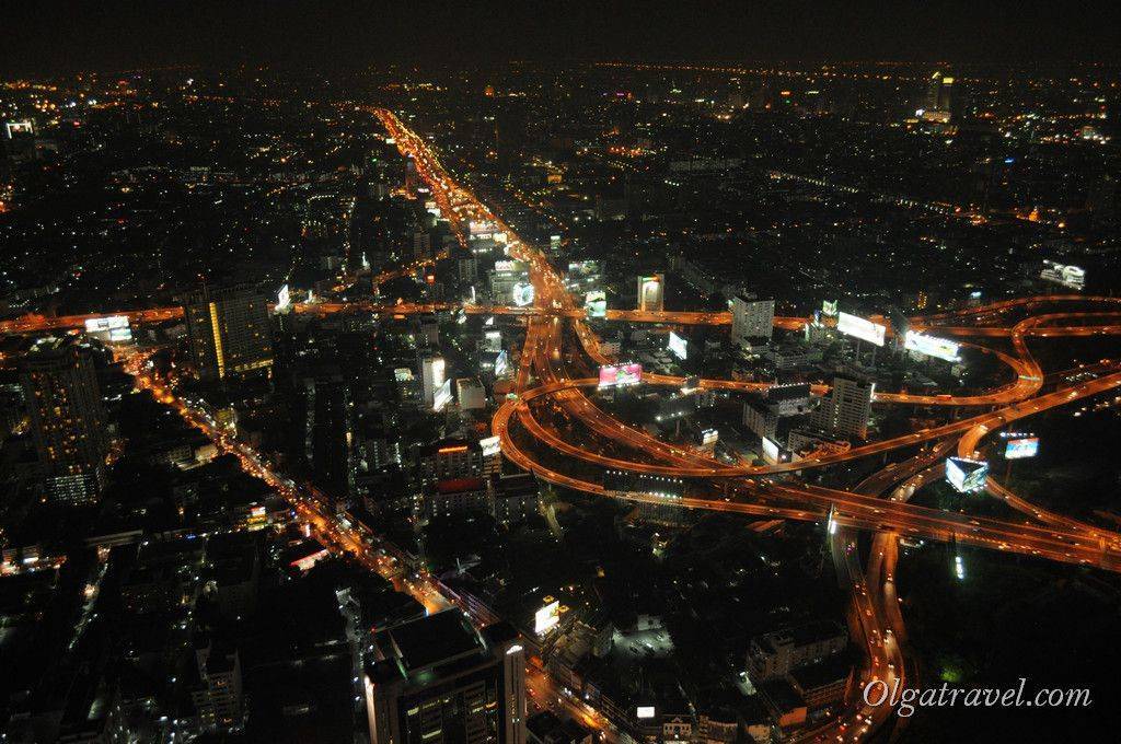 Даже днём восхищают дорожные развязки и наземное метро в два уровня, но ночью Бангкок смотрица прекрасно.