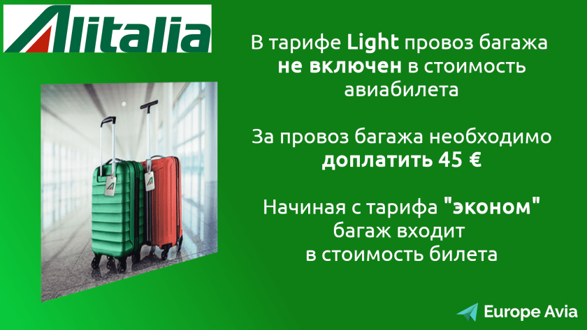 Багаж на рейсах Alitalia при перелете по тарифу Light