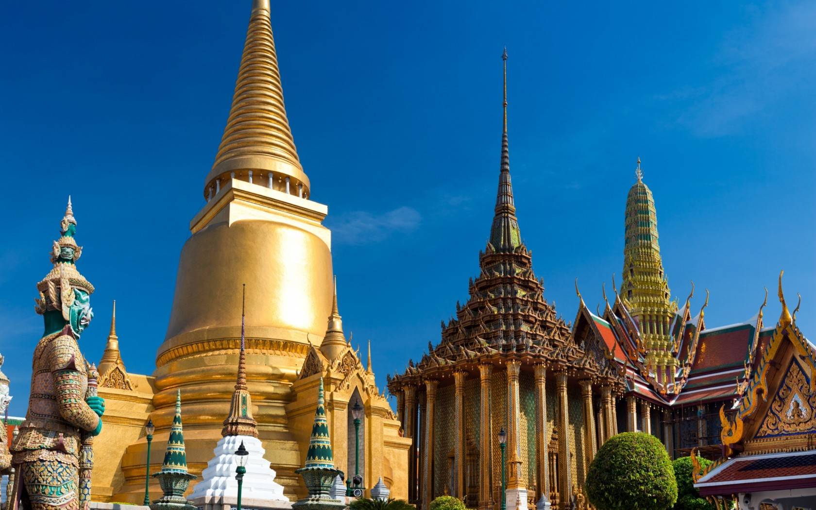 Силуэт дворца определяют три высоких строения: Пхра Сиратана Чеди, Пхра Мондоп и Пхра ПрасатТхепхидон.