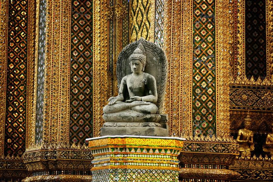 Если бы мы продолжали следовать принципам европоцентризма, то сказали бы «варварская роскошь». Золото, похоже, ненастоящее. А, может, и настоящее. Всё же Таиланд – страна богатая и к тому же не был колонией европейских держав, которые, известное дело, любили чужое добро. А в Таиланде всё сохранилось. Разноцветный блеск напомнил мне оформление старых павильонов ВДНХ.