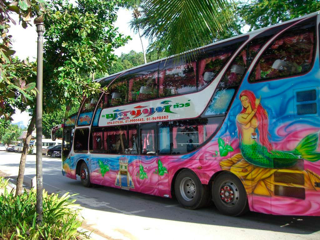 Также до Краби можно добраться на автобусах частных турагенств, они отправляются с улицы Каосан. Цена проезда будет стоить примерно 30 долларов. Выглядят они красиво, но это их единственное преимущество.