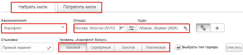 Калькулятор миль Аэрофлот в личном кабинете программы