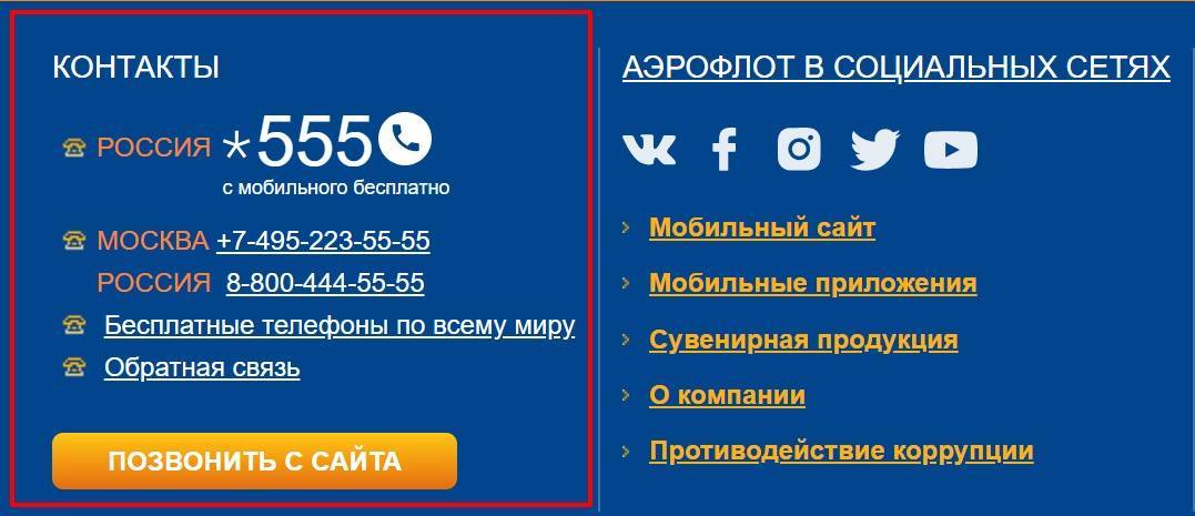Для удобства пассажиров существует общая горячая линия для жителей России, отдельные номера для жителей Москвы и клиентов, находящихся в самых разных уголках мира. Позвонить можно как с мобильного, так и со стационарного телефона.