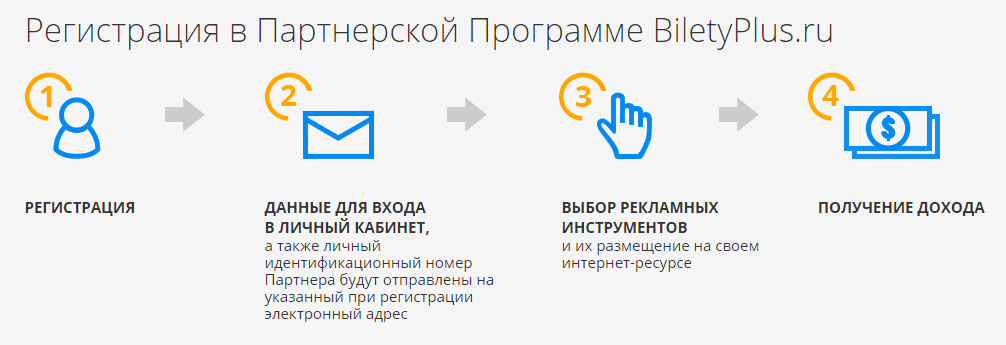 Процесс работы с партнеркой BiletyPlus.ru выглядит следующим образом: