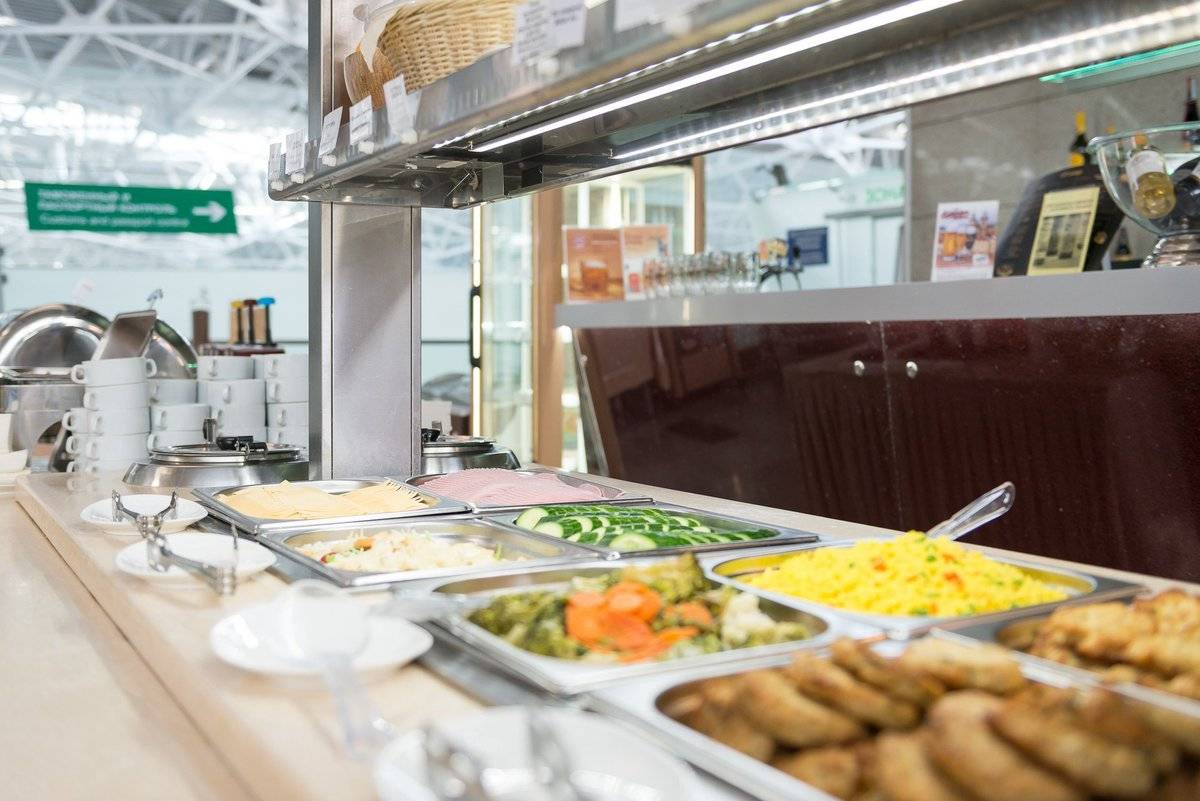 Во всех Vip-залах можно пообедать и при желании посетить бар, в котором предлагаются алкогольные и безалкогольные напитки. Ассортимент напитков включает соки, воду, пиво, вино, мартини, чай и кофе. Холодными закусками и горячим питанием можно полноценно позавтракать, пообедать и поужинать. Их ассортимент более широкий: блины, каши, йогурты, мюсли, омлет, разнообразная свежая выпечка, холодные и горячие салаты, супы, горячие блюда, рыбные и мясные закуски.