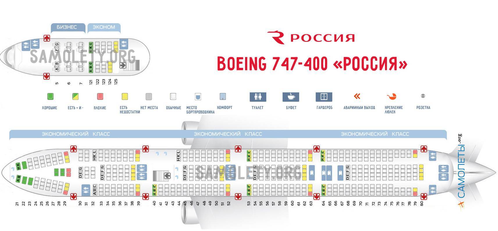 Чаще всего у авиа]«Россия» встречается такая схема в самолете Боинг 747-400: