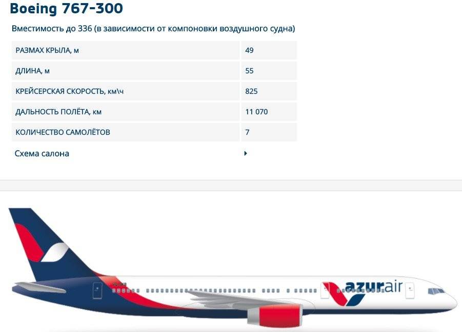 Схема салона «Боинга 767-300» авиакомпании Azur Air