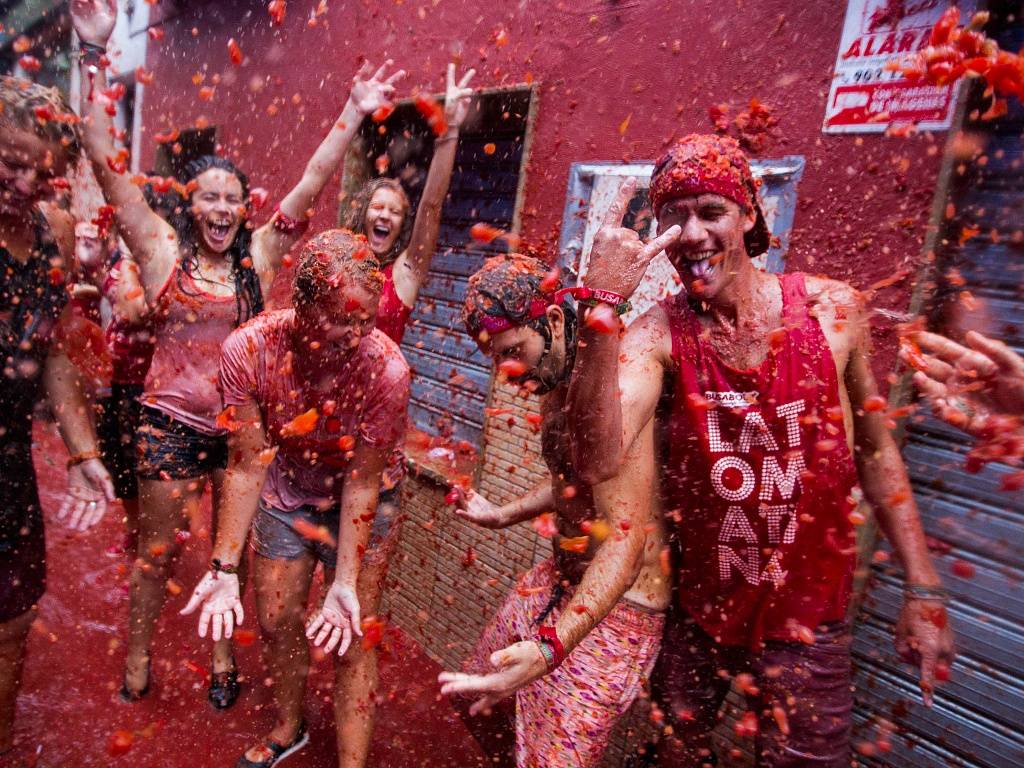 В Испании проводится праздник La Tomatina. Традиция праздника достаточно странная. В последнюю среду августа на площадь высыпается огромное количество помидоров, а люди, в свою очередь, начинают забрасывать ими друг друга. Традиция праздника уходит в далекий 1945 год, когда во время драки на площади в одном из городов Испании сил у мужчин не осталось и они стали забрасывать друг друга помидорами.