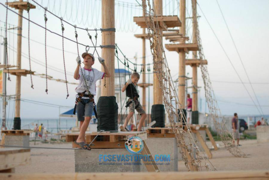 Недалеко от аквапарка – в Парке Победы – есть самый большой в Крыму веревочный парк «Остров Сокровищ».