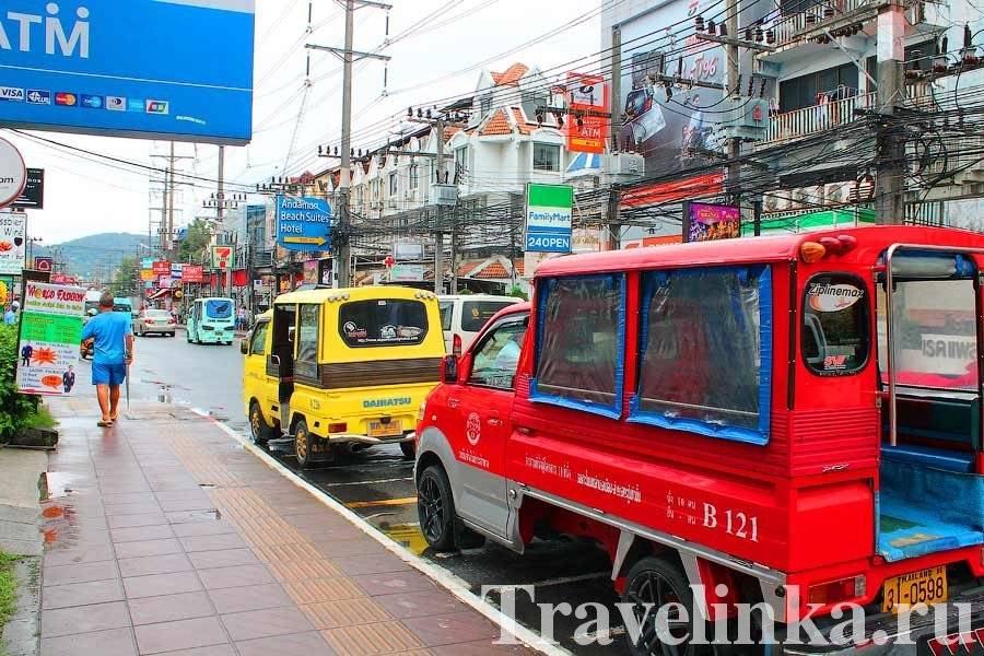 Если вы предпочитаете воспользоваться транспортом, то можно поймать такси или сонгтео. На Пхукете нет тук-туков. Передвигаться на сонгтео не очень удобно, поскольку по тарифам маршрутки они ездят только днем, а вечером по тарифам такси. И маршруты у них не особо разветвленные. Цены на такси на Пхукете высокие (от 600 бат). Таксисты ни в какую не соглашаются снижать цены. Поэтому если вы не взяли байк в аренду, на транспорт на Пхукете вы потратите ощутимую часть своего бюджета.