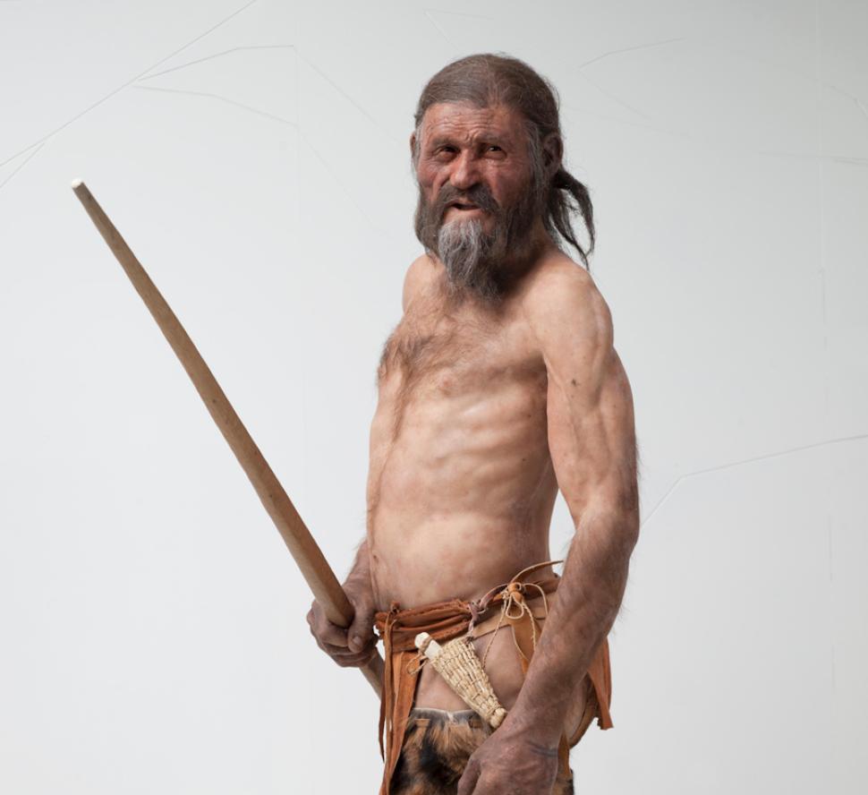 Возможно, самая большая удача постигла антропологов и археологов, когда была найдена хорошо сохранившаяся мумия древнего человека. Он жил в Альпах в эпоху халколита, то есть на стыке каменного и медного веков, погиб во время перехода через горы и оказался сохранен во льду на 5 тысяч лет. В наше время его назвали Эци, расшифровали его геном и выяснили множество крутых вещей, вроде того, что умер он в бою, перед смертью нес на плечах раненого товарища, и у него не было одной пары ребер (такая вот мутация). Выяснилось и про рацион типичного жителя тех мест: отруби, фрукты, коренья, мясо серны и оленя — все это было найдено в кишечнике Эци, то есть питался он достаточно разнообразно.