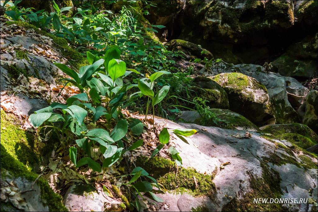 Ландыши в байрачных лесах севера нашей области не являются редкостью, но в этом месте они радуют глаз — настолько органично смотрятся среди замшелых камней!