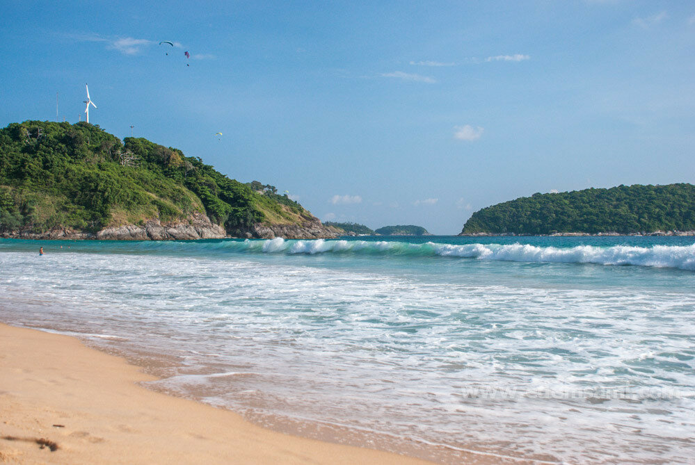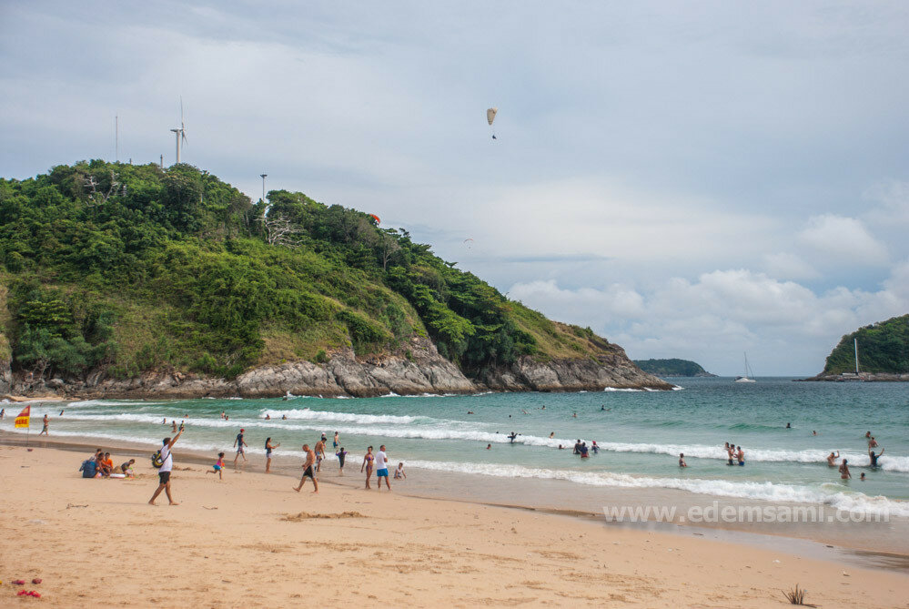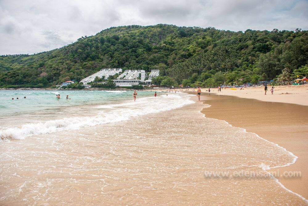Бухта, окруженная очень привлекательными зелеными холмами, является одной из самых красивых на Пхукете. Все еще довольно дикий пляж (поблизости есть только несколько отелей), эта коса с белым песком погружается в мелкие бирюзовые воды и подходит для комфортного, безопасного плавания.