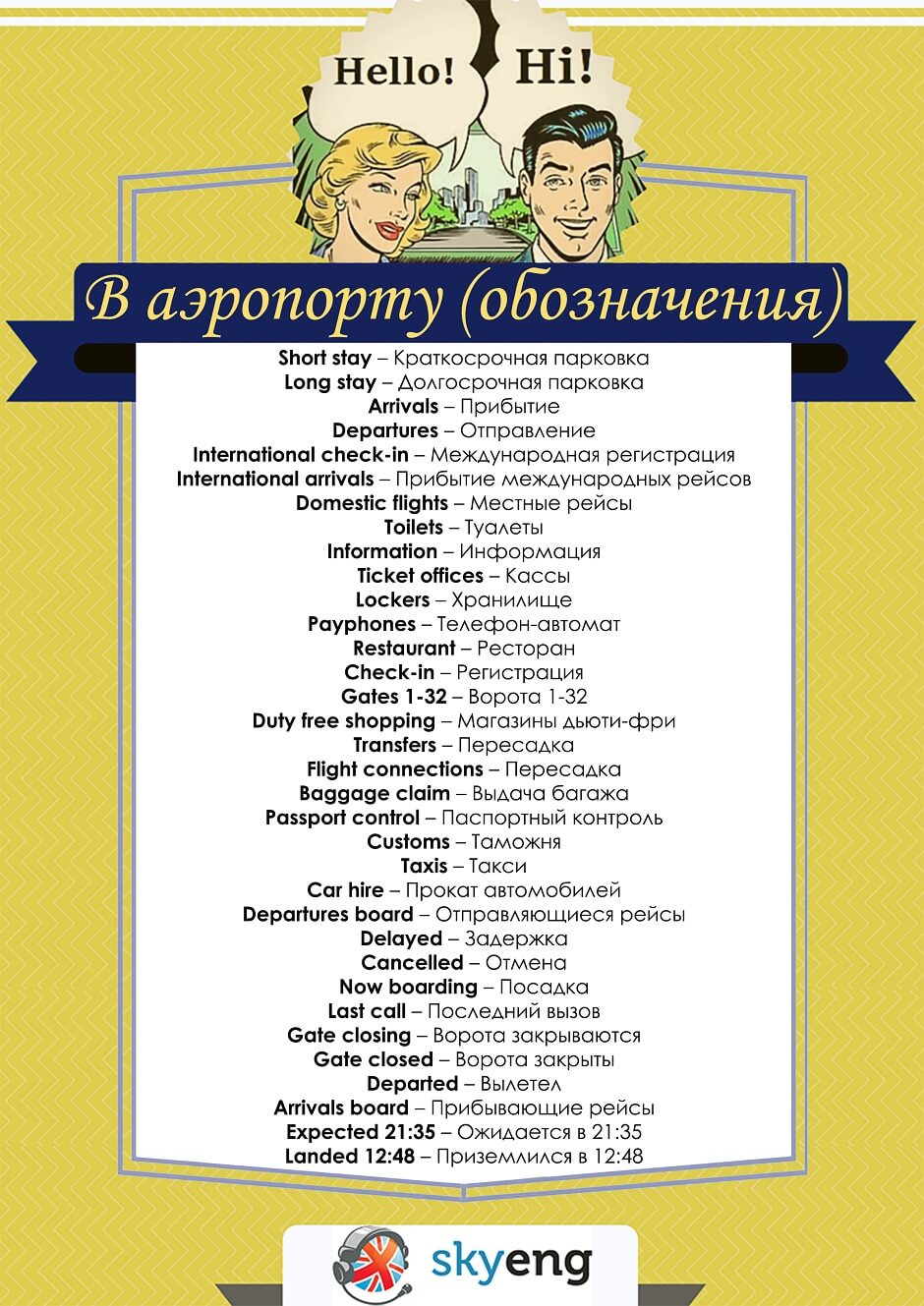 Полезная шпаргалка для туристов, плохо владеющих английским. Наиболее популярные надписи и фразы в аэропорту