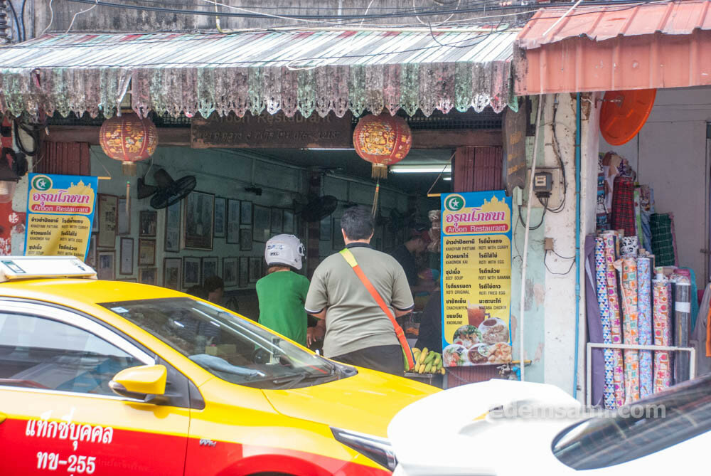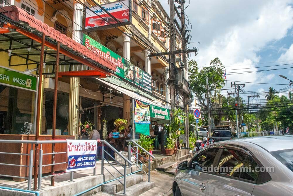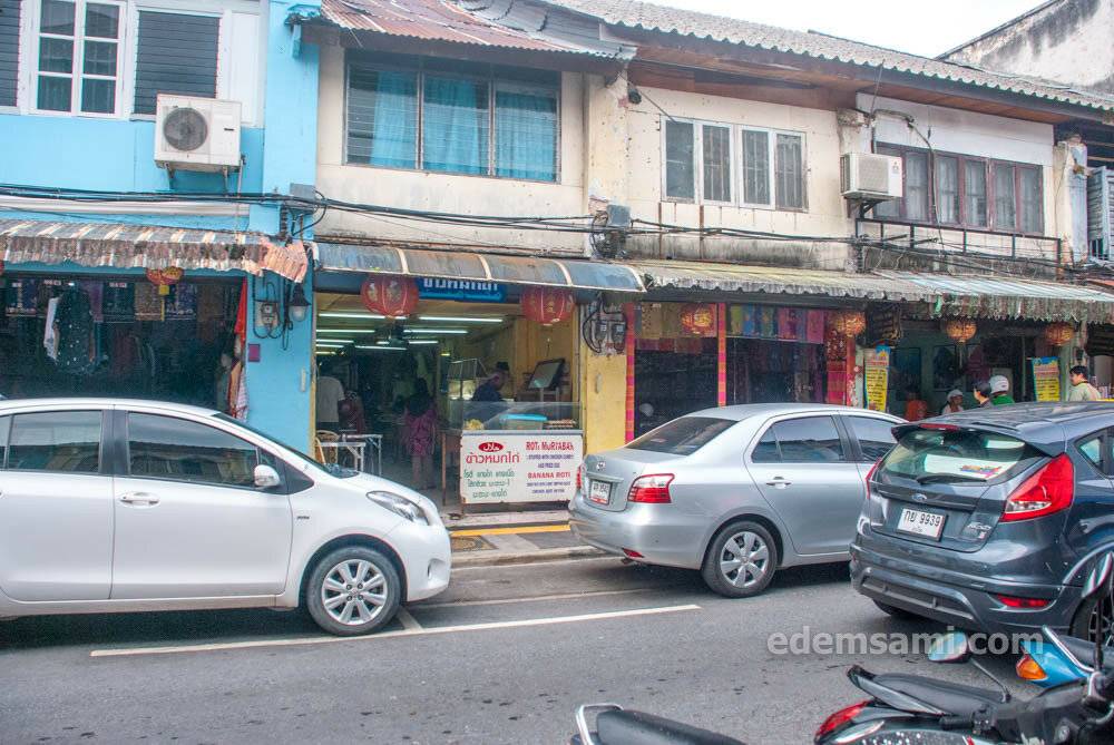 Обе точки, которые я рекомендую, находятся на Тхаланг-Роуд прямо у перекрестка с левой стороны, если идти от Пхукет-Роуд к Яорават-Роуд и характерно называются Abdul Roti (на верхнем фото с белой и голубой вывесками) и Arun Roti (на нижнем фото с желто-синими вывесками; через 1 шоп от Абдулы). Оба заведения, само собой, халяльные.