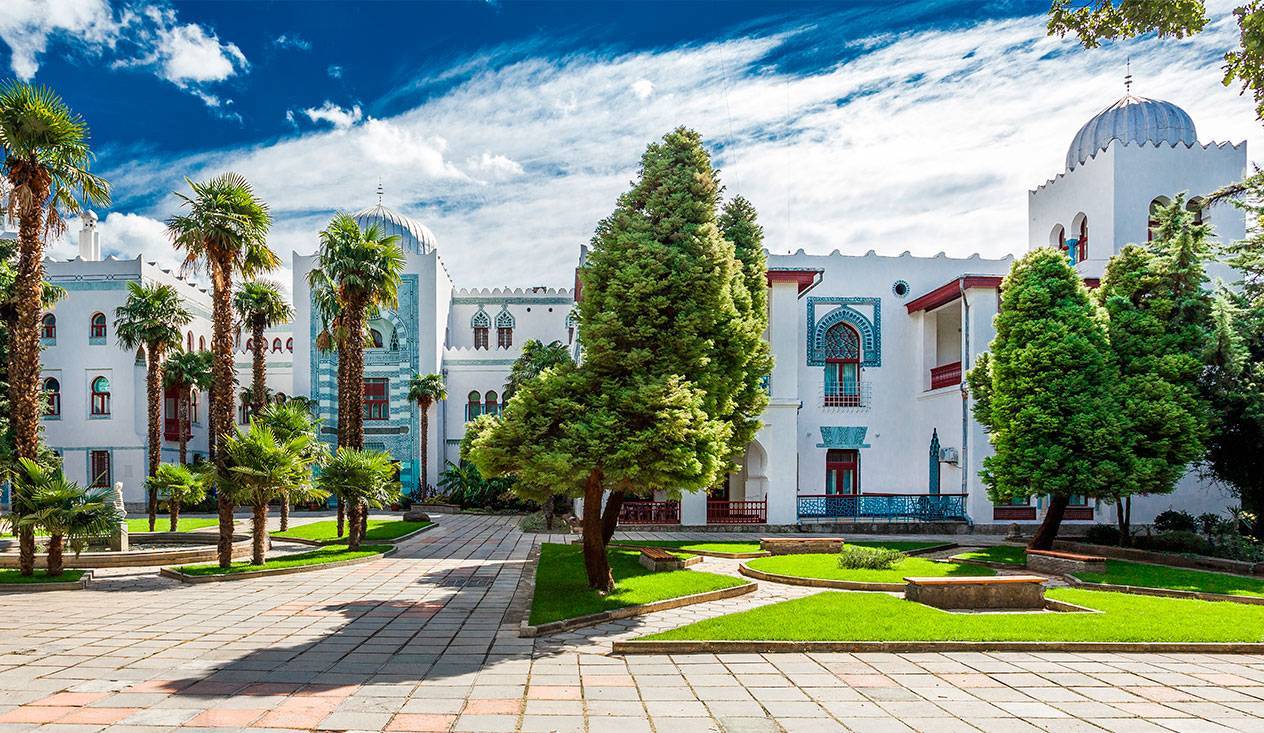 Больше столетия назад в Ялте был возведен дворцовый комплекс, который принадлежал эмиру Бухары и служил его крымской резиденцией. До наших дней из четырех зданий комплекса сохранился один дворец, построенный в неомавританском стиле. Он отличается асимметрией, оригинальными архитектурными формами и изящным декором.