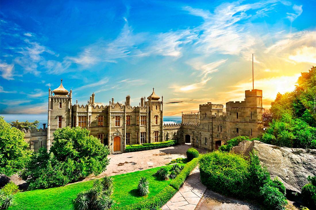 Этот величественный дворец был возведен в Алупке для князя М.С. Воронцова в 1848 году. Роскошный дворцовый комплекс из серого камня в неомавританском стиле гармонично вписался в окружающий крымский ландшафт. Парадные интерьеры Воронцовского дворца удалось сохранить практически в первозданном виде.