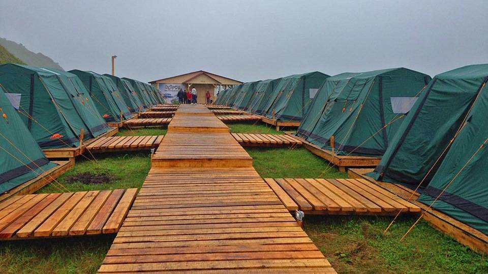 Завершить путешествие по Сахалину лучше всего в бухте Тихая. Расположенная на берегу Охотского моря, эта бухта – одно из самых живописных мест острова. В низине можно поставить палатку, а потом погулять по окрестным холмам и насладиться пейзажами. Команда Toyota взяла с собой палатки Alexika Victoria 5 Luxe и разбила комфортный палаточный лагерь на берегу моря. Рядом оборудовали стоянку, зону отдыха, душ и туалет, а также камеры хранения. Сам лагерь состоял из 17 комфортных палаток для каждого из экипажей Toyota. Потрясающие по своей красоте места лучше посещать летом, когда склоны покрывает зеленая трава, а песчаный пляж контрастирует с лазурно-голубым Охотским морем.