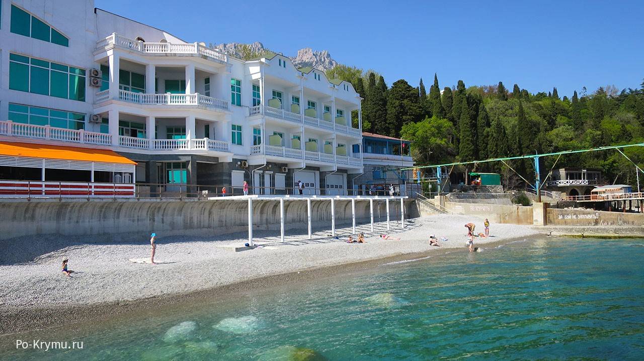 Пляжи здесь, на и на большей часть побережья ЮБК, галечные, но по всему побережью летом работает прокат лежаков. Также на них оборудуются навесы, работают кафе, бары и торговые точки с полезной туристам товарами — надувными кругами, сланцами, панамами и пр.